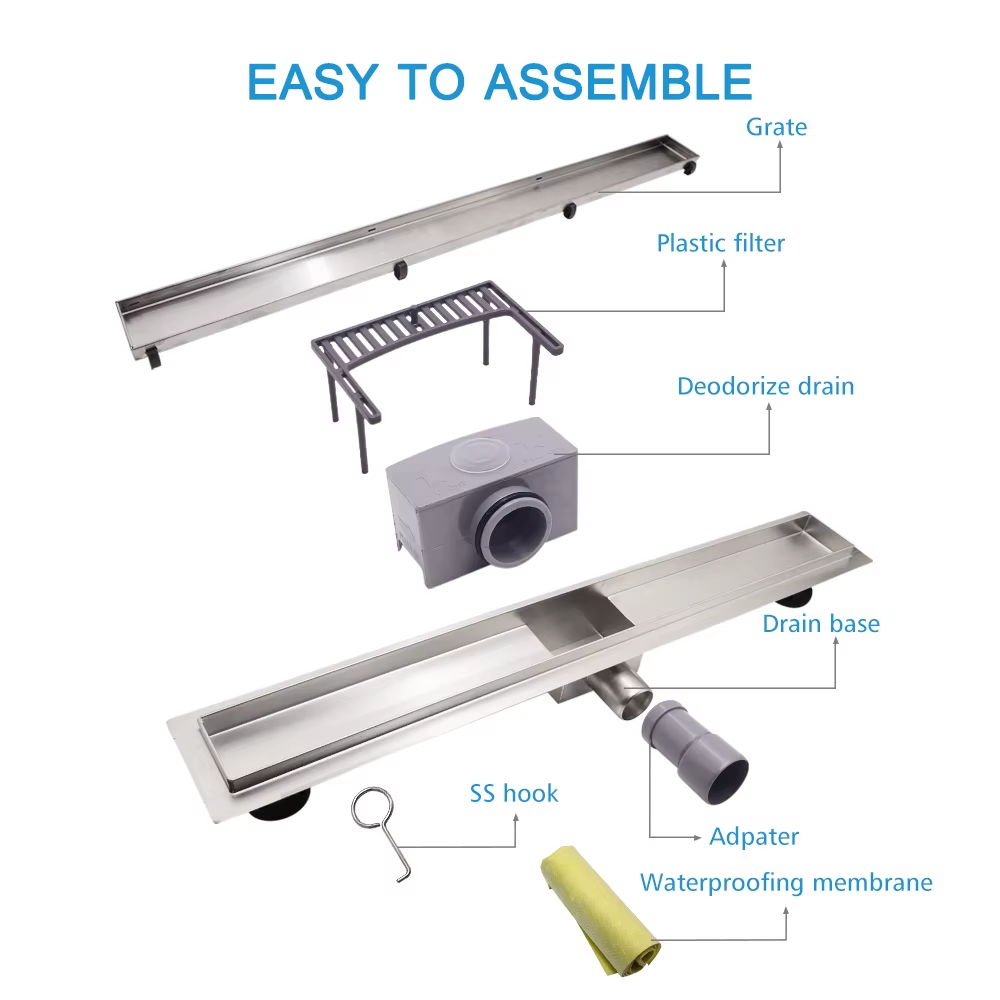 De douchegoot is ontworpen met gebruiksgemak en duurzaamheid in gedachten. Het ingebouwde filter is makkelijk te onderhouden en zorgt ervoor dat vervuiling, haren en andere verstoppingen effectief worden tegengehouden. Dankzij hoogwaardige materialen en een slim ontwerp biedt deze douchegoot een lange levensduur zonder afbreuk te doen aan functionaliteit. Het is een investering in zowel stijl als praktische waarde voor jouw badkamer.